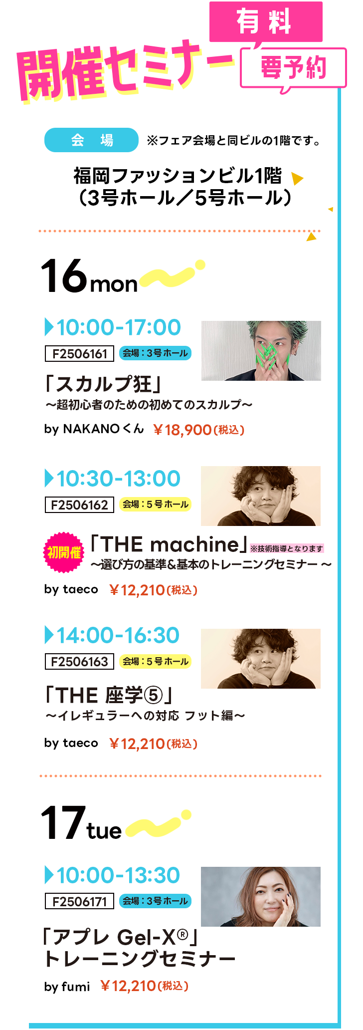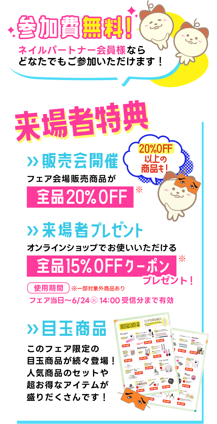 福岡フェア2025 HOME 福岡フェア2025 今年も福岡でネイルパートナーフェア開催! 販売会ではフェア限定の特別セットや超お得な商品が盛りだくさん! また参加メーカーから超豪華な講師陣を迎え、無料のスペシャルステージを同時開催します!