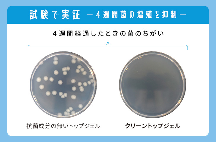 室温静置で4週間保管後、JIS Z 2801に基づき抗菌試験を実施