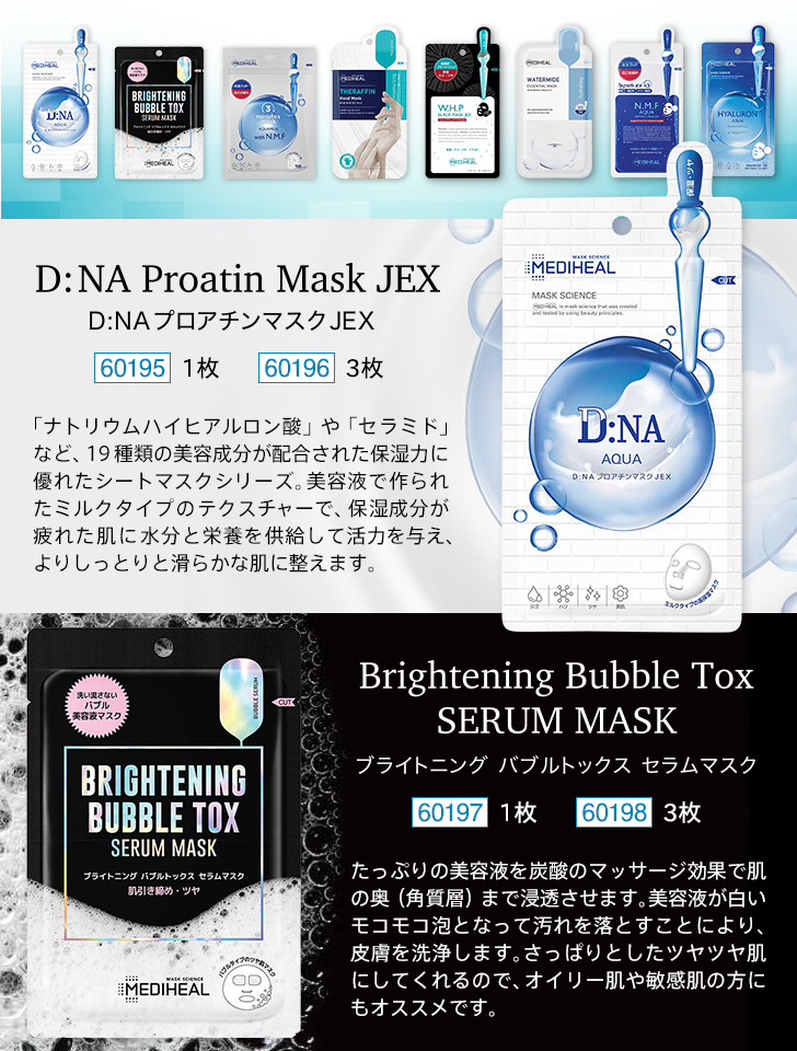 日本を含め世界各国でベストコスメ選出&受賞、シートマスク販売累計23億枚を突破した、グローバルスキンケアブランド MEDIHEAL(メディヒール)。「スピーディー&簡単&効果的に」ケアできるシートマスクを、毎日のスキンケアルーティンに取り入れていただきたいという想いから、韓国のL&P COSMETIC社が皮膚サイエンスに基づき研究・開発されました。