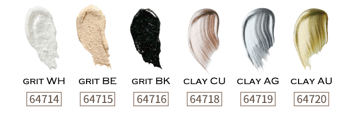 グリッドシリーズ/クレイシリーズ(2.5g) 漆喰のような質感で、無機質な仕上がりのアートを楽しめる grid(グリッド)シリーズと、メタリックの質感で硬さがあり、筆圧を残したペンキのようなアートや、立体的なデザインを作ることができる clay(クレイ)シリーズ。