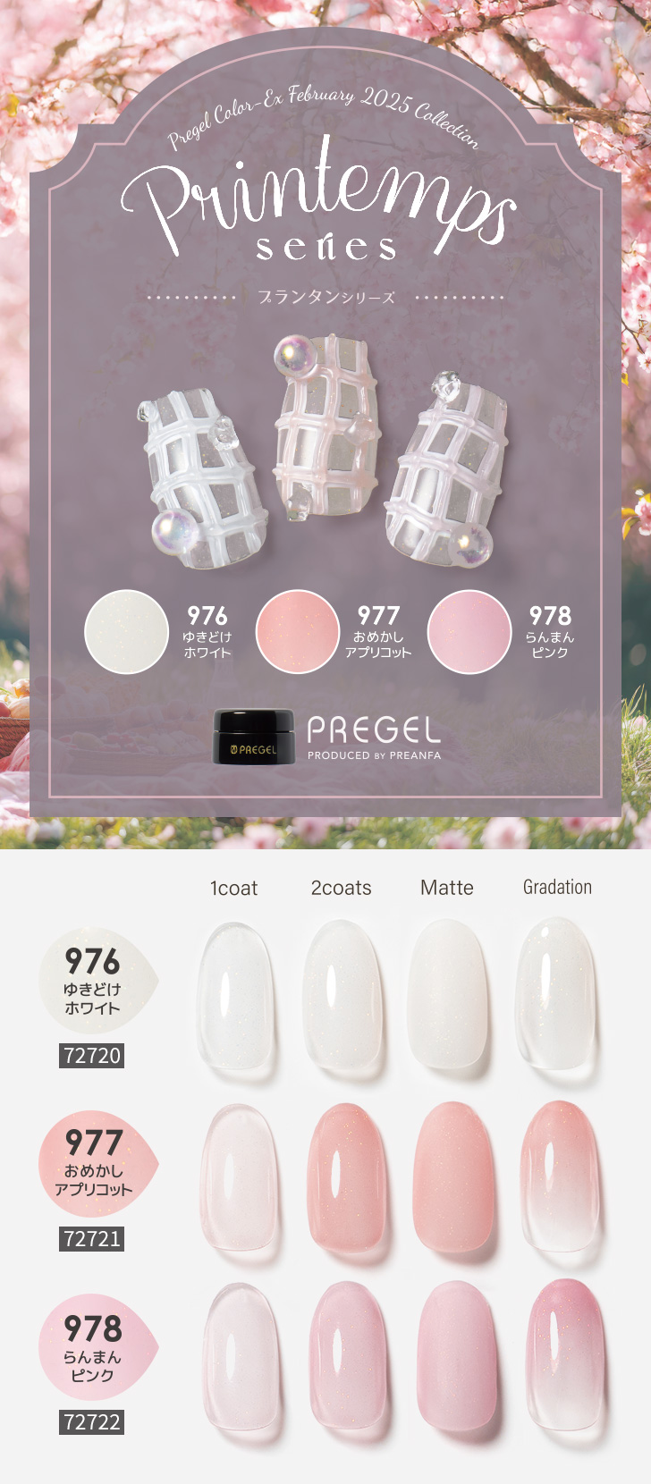 オンラインショップ プリジェル カラーEX PG-CE976購入画面へ プリジェル カラーEX PG-CE977購入画面へ プリジェル カラーEX PG-CE977購入画面へ プリジェル カラーEX プランタンシリーズ 3g×3色セット購入画面へ