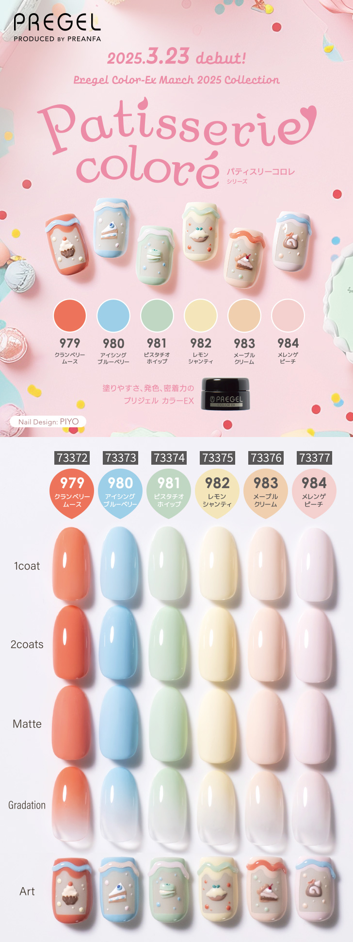 オンラインショップ プリジェル カラーEX PG-CE979購入画面へ プリジェル カラーEX PG-CE980購入画面へ プリジェル カラーEX PG-CE981購入画面へ プリジェル カラーEX PG-CE982購入画面へ プリジェル カラーEX PG-CE983購入画面へ プリジェル カラーEX PG-CE984購入画面へ プリジェル カラーEX パティスリーコロレシリーズ 3g×6色セット購入画面へ