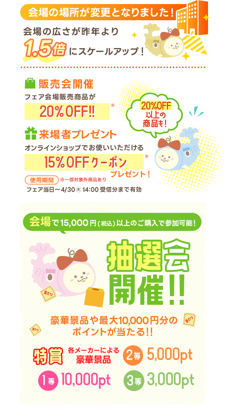 さらに今年は会場が新しくなりました!昨年より約1.5倍にスケールアップした新会場で、もっと快適&パワーアップしたフェアをお届けします!