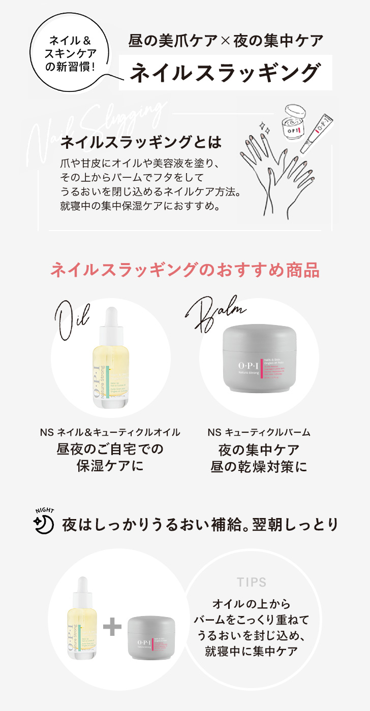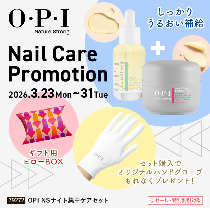 新発売のOPI Nature Strong(ネイチャーストロング)から、話題の夜用集中ケア(ネイルスラッギング)を体験できるスペシャルケアセットが登場!対象アイテムをご購入いただくと、「オリジナルコットンハンドグローブ」と「OPI限定デザインピローBOX」がついてくる!
