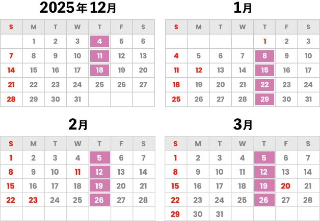 スケジュールをご確認の上、受講希望日をお申し込みください。