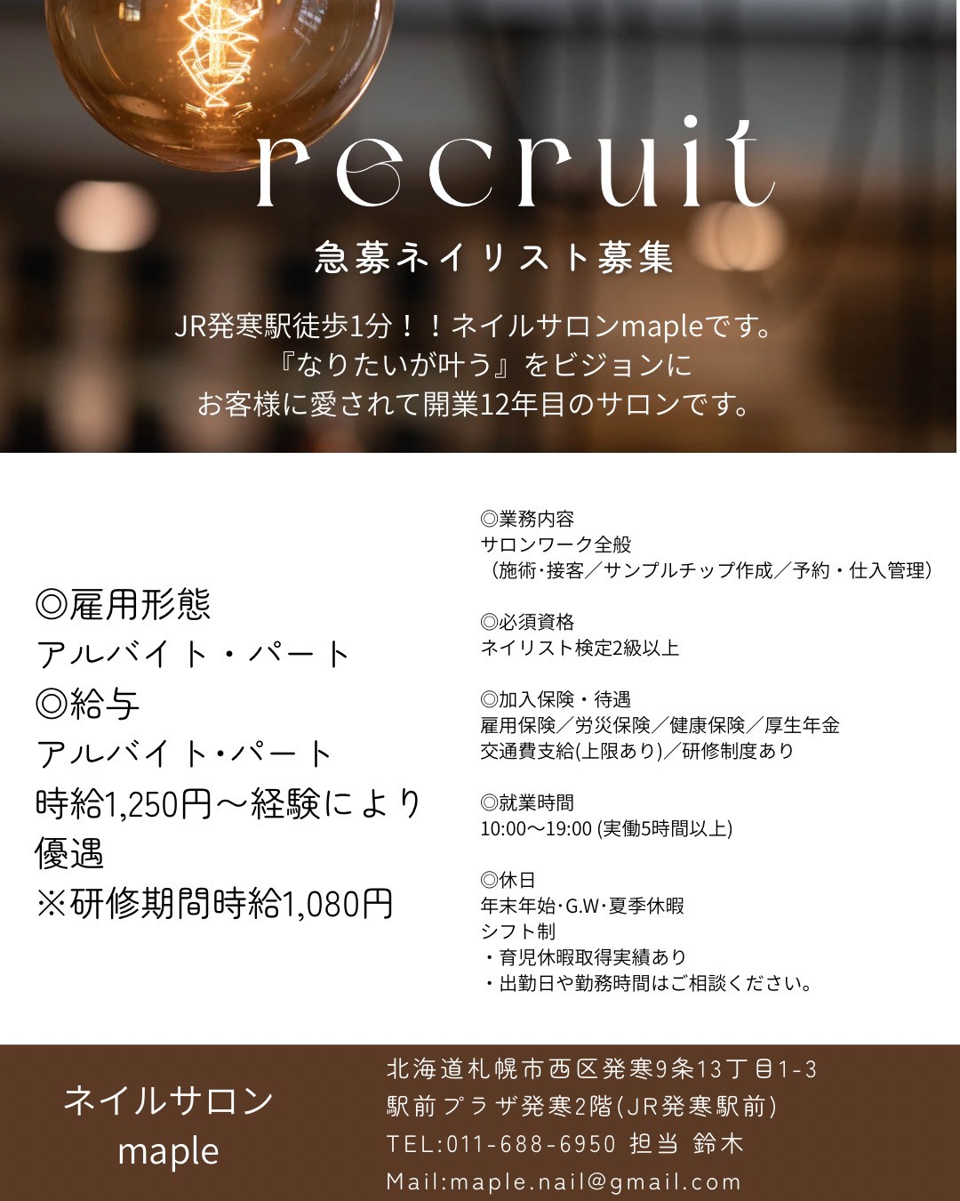 ネイルサロンmapleアルバイトパートタイム